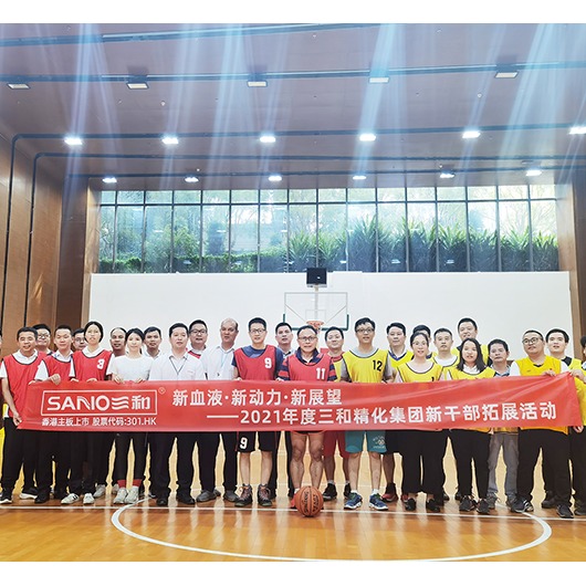 当日下午,三和精化集团董事长兼总裁 Ernest 与新入职干部们在恒大室内篮球场进行了一场友谊赛。